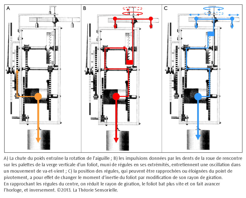 5) Analogie entre une horloge à foliot et une cellule ciliée type II. Roi, P. et Girard, T. © 2013. La Théorie Sensorielle.